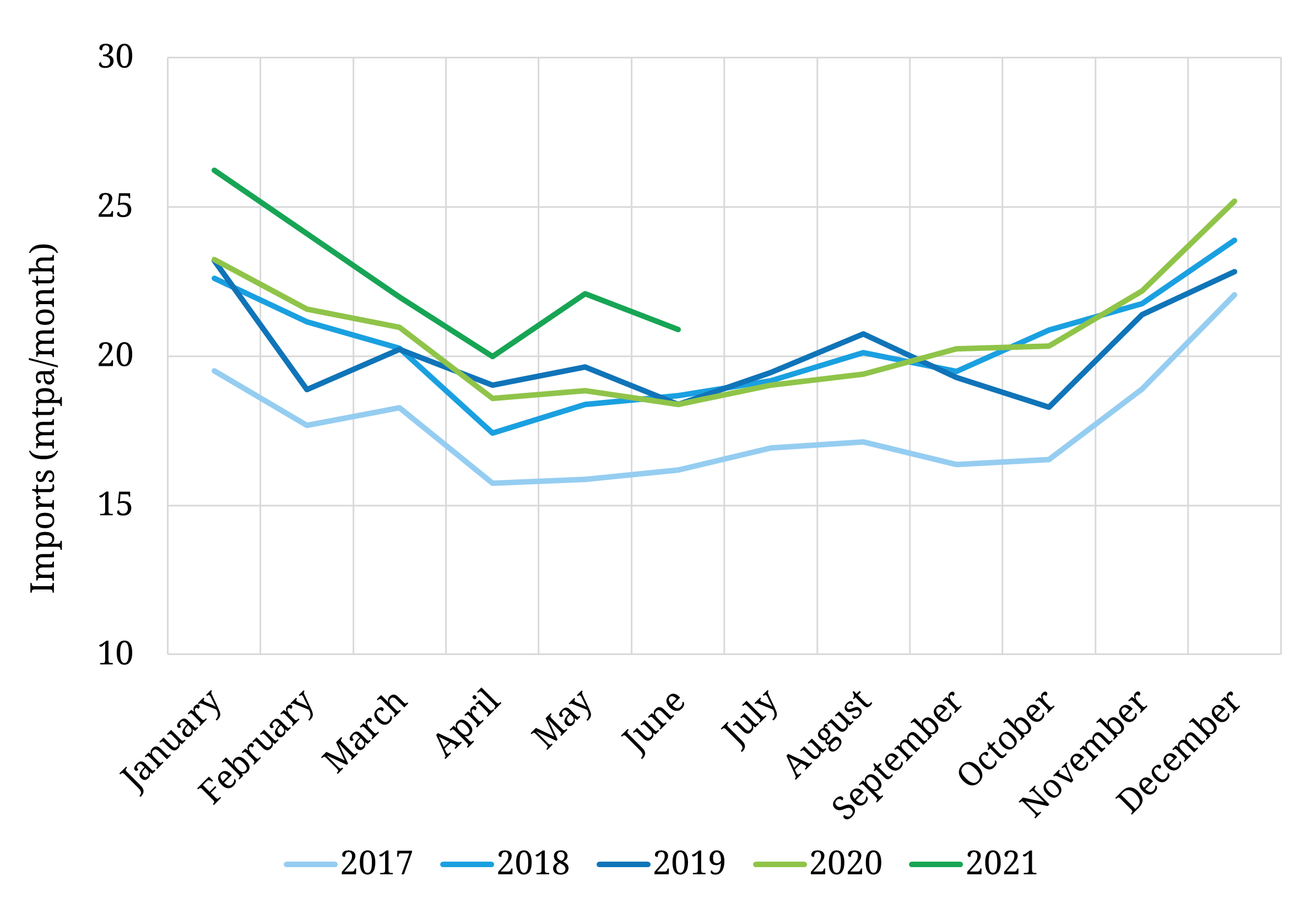 Chart 2: 2021 Asian LNG demand in a 5 year context