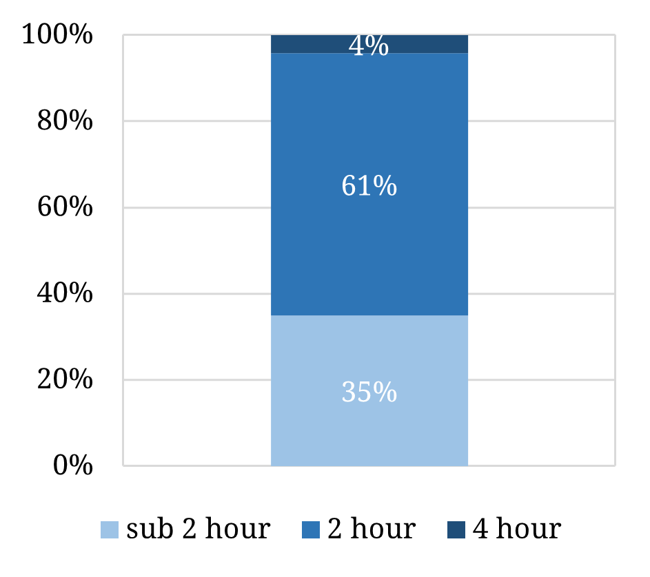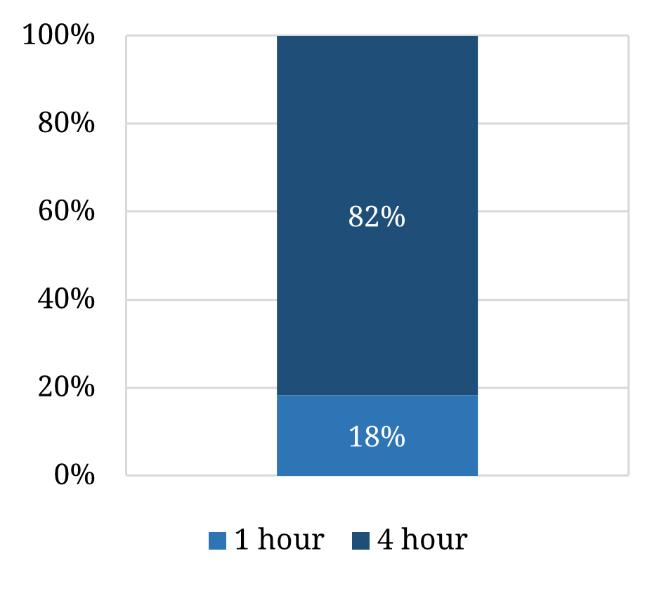 One hour duration batteries have dominated previous UK capacity auctions, but the majority of capacity in the latest auction is of 2 hour duration or longer, with 4 hour duration batteries making an appearance for the first time as shown in Chart 2.