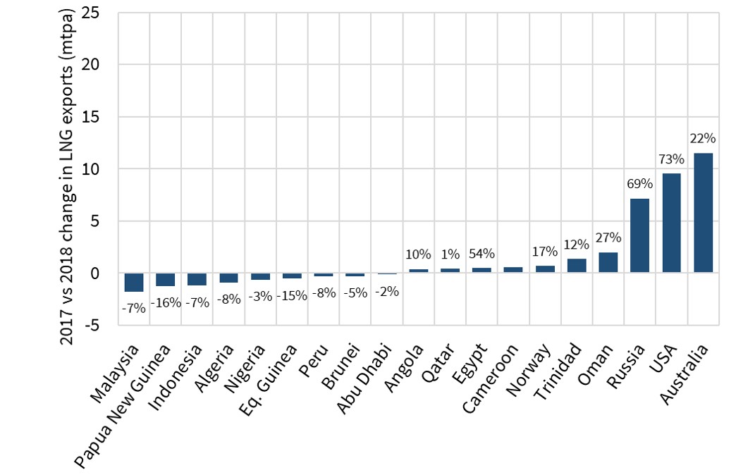 - Russia: with a healthy 17.8 mtpa (24.2 bcma) export growth in 2018