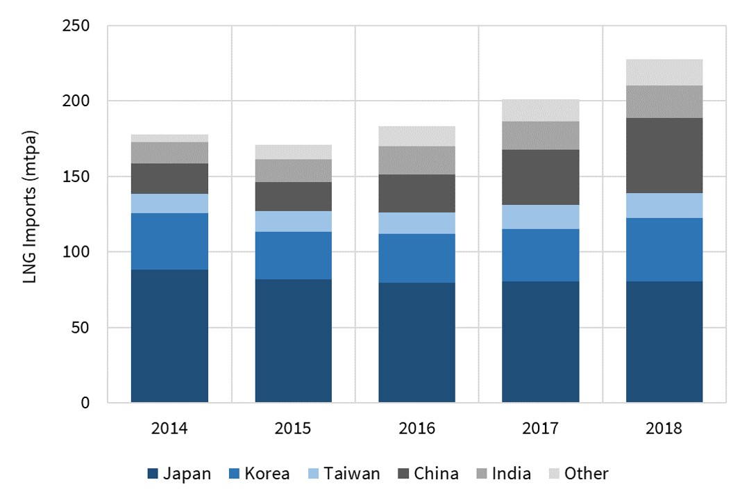 The most established structural trend in the LNG market is Chinese demand growth. China accounted for 61% of the 51 mtpa (69 bcma) of Asian demand growth from 2015-18, as shown in Chart 1.