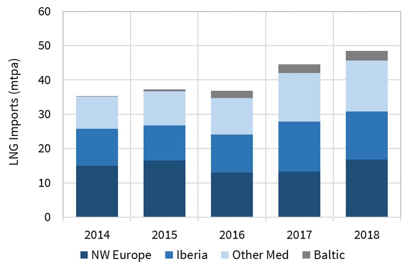 The Q4 surge in surplus LNG flows into North West Europe supported European demand growth in 2018. But this followed a European demand growth trend established in 2016-17 by: