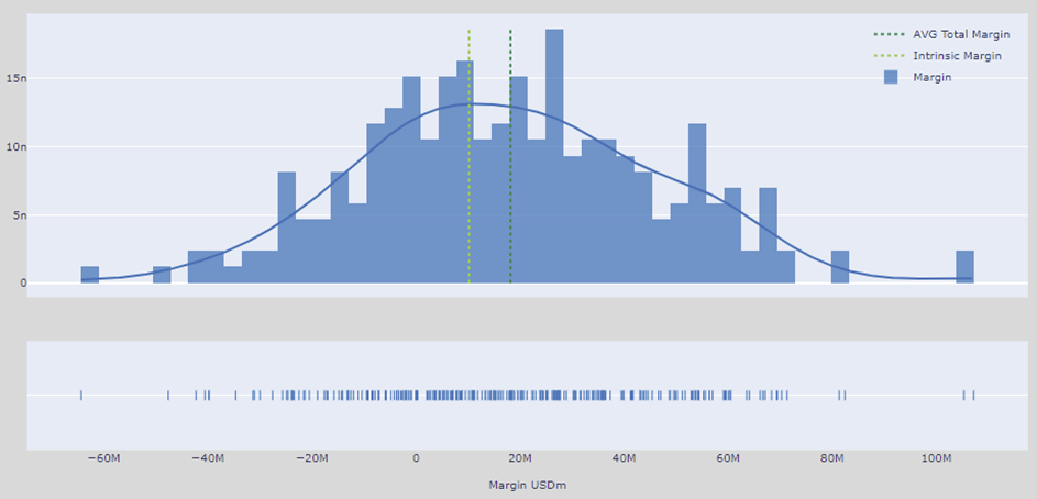 While this distribution is relatively wide on a standalone basis, contract risk can be managed via hedging (e.g. using liquid JKM and TTF curves), although this will act to reduce access to value upside. There can also be offsetting impacts of other positions that dampen the impact of risk on portfolio margin.