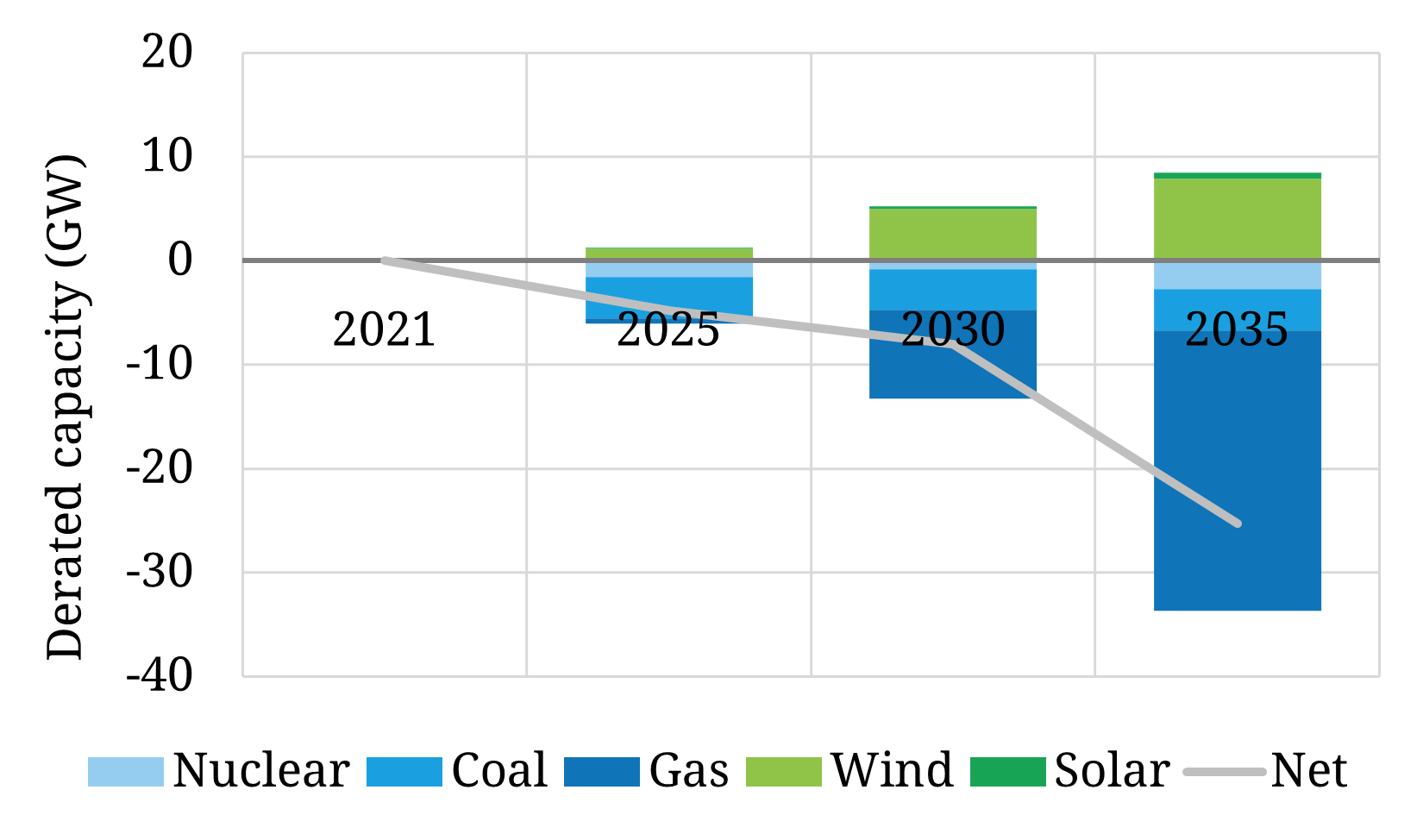 - Derated capacity reductions from the closure of all coal by 2025, all CCGTs by 2035 and nuclear plants based on regulatory scheduled closure dates.