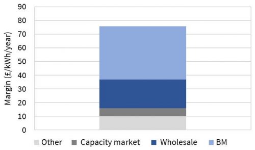 Chart 1: Illustrative stacked margins required to support a transmission connected UK battery