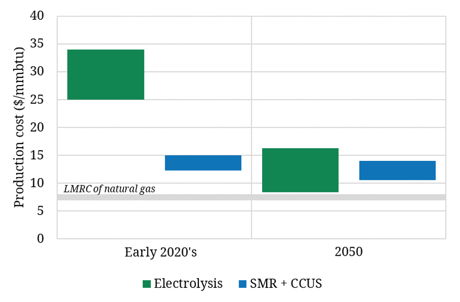 Chart 1 Estimated electrolysis vs methane reform cost ranges