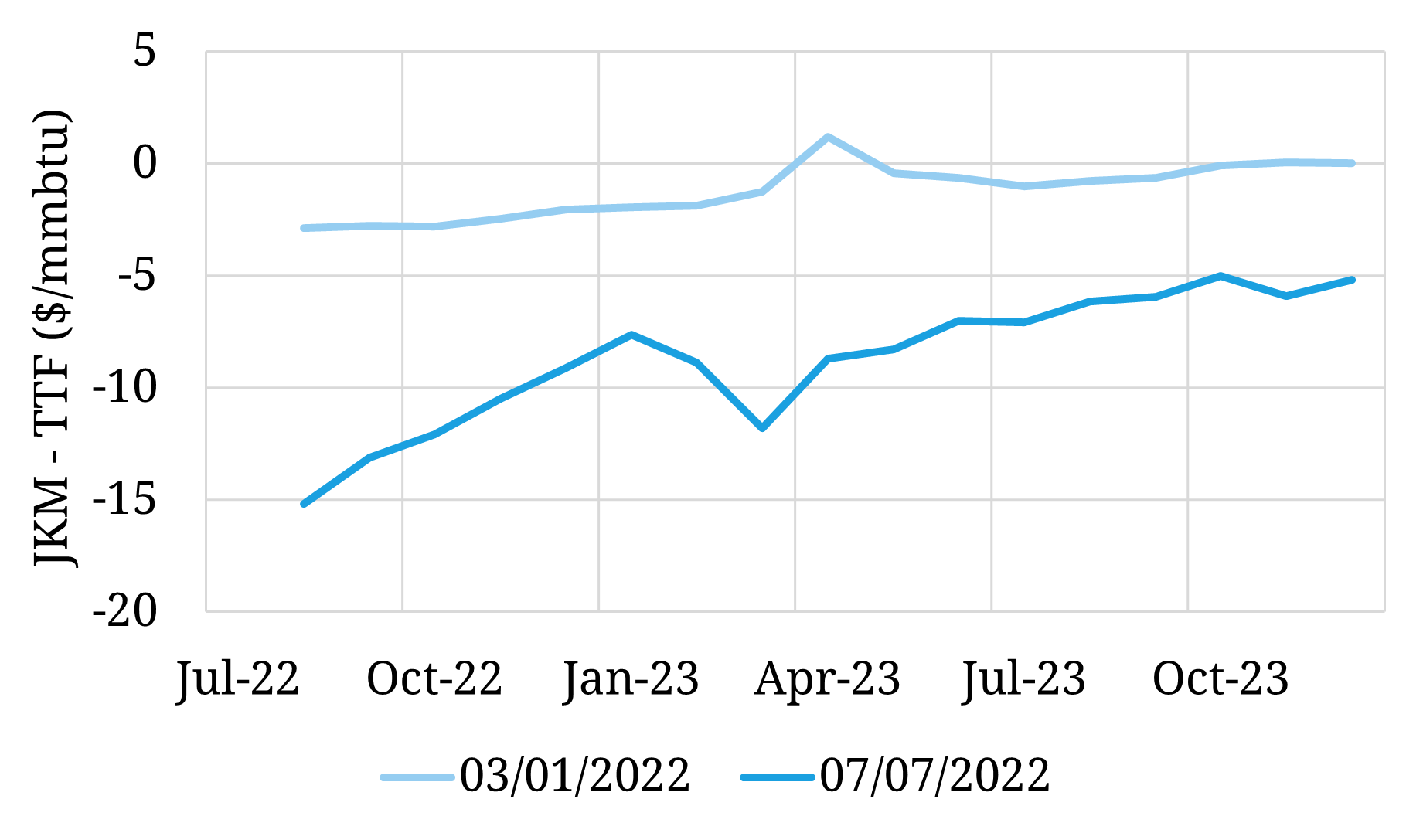 Chart 2: TTF vs JKM price differential