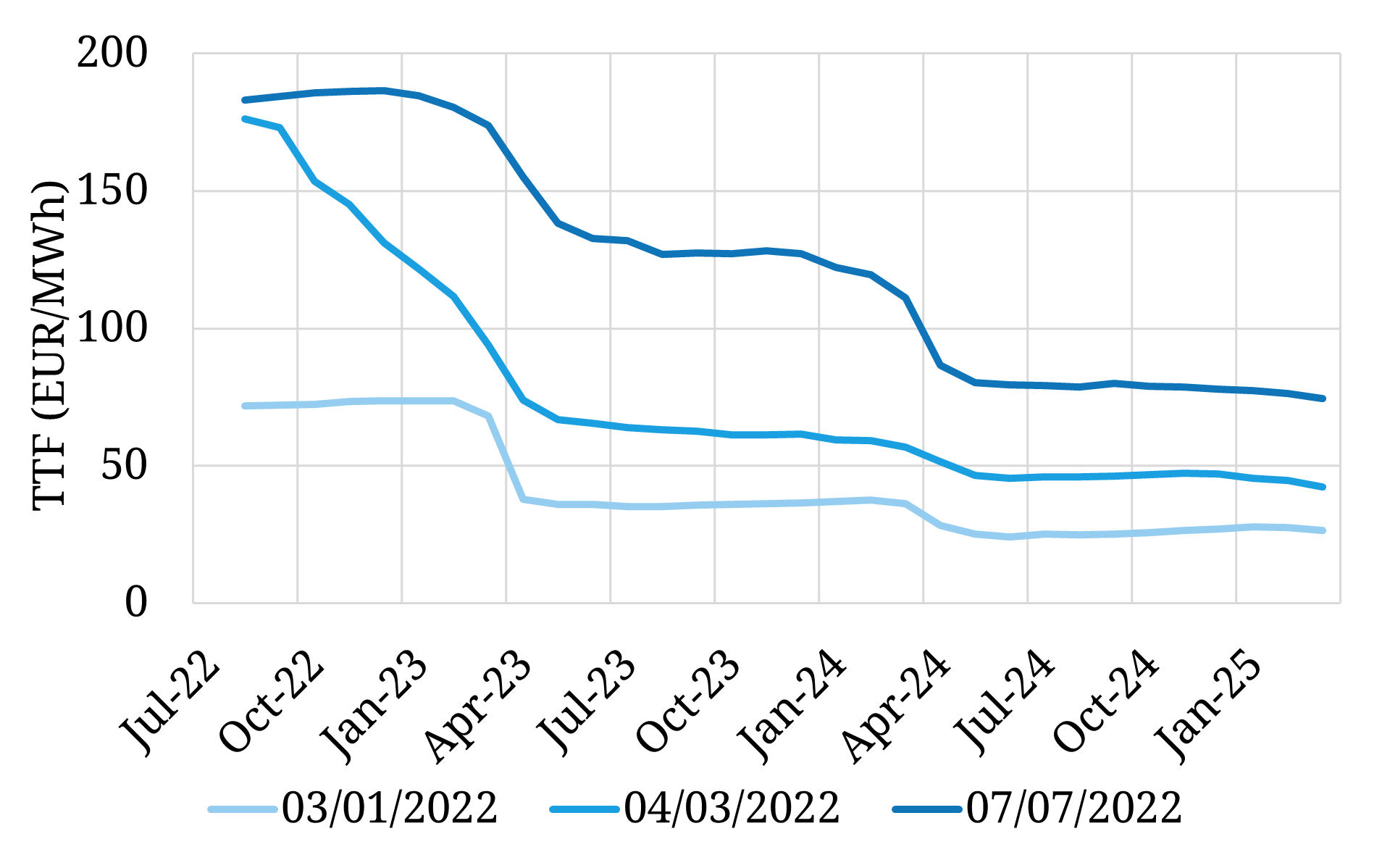 Chart 1: 3 step evolution of TTF forward curve since start of 2022