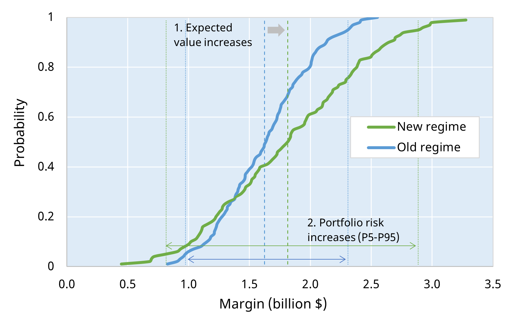 Chart 3 shows analysis we have undertaken in our LNG Bridge portfolio valuation model to quantify the scale of increase in risk for a case study LNG portfolio as a result of the recent market regime shift. See here if you are interested in more details of the portfolio & analysis behind this.