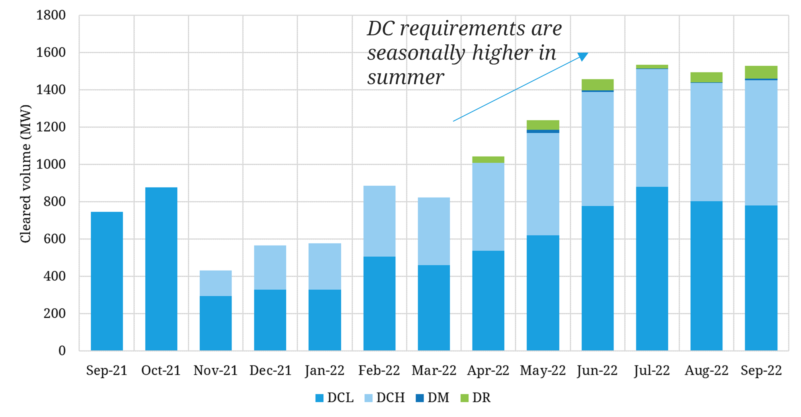 Grid’s demand for DC services (DCL & DCH products) has sat mostly in a 0.6-1.5GW range across the last year as shown in the top panel of Chart 1. DCH accounts for just under half of this demand and is a substantially lower value service compared to DCL.