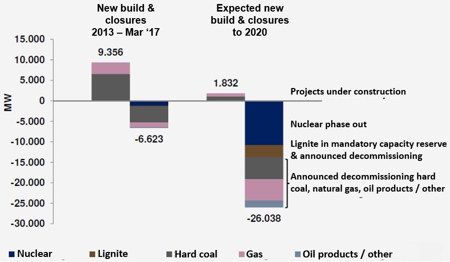 - 11GW of regulatory driven closures of German nuclear plants by 2022.