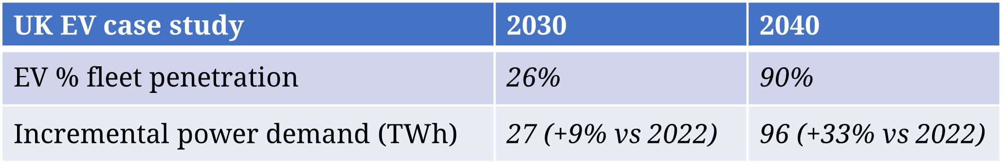 Car manufacturers are transitioning production lines & supply chains to lock in the path to electrification of passenger vehicles. Within the next couple of years EVs are set to gain a cost advantage over conventional ICE vehicles, particularly if oil prices remain high. This will accelerate adoption. The UK case study below illustrates the demand impact of passenger vehicle fleet transition to EVs.