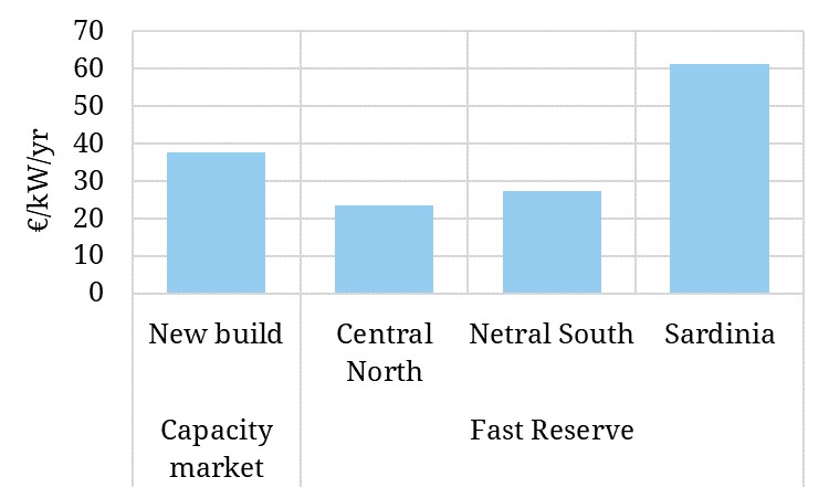 The Italians are pursuing the long term contract route to help support battery investment. TERNA has introduced Capacity Market and a Fast Reserve auctions, offering up to 15 year and 5 year contracts respectively. Both the Capacity Market and Fast Reserve have so far sent relatively attractive price signals to battery investors.