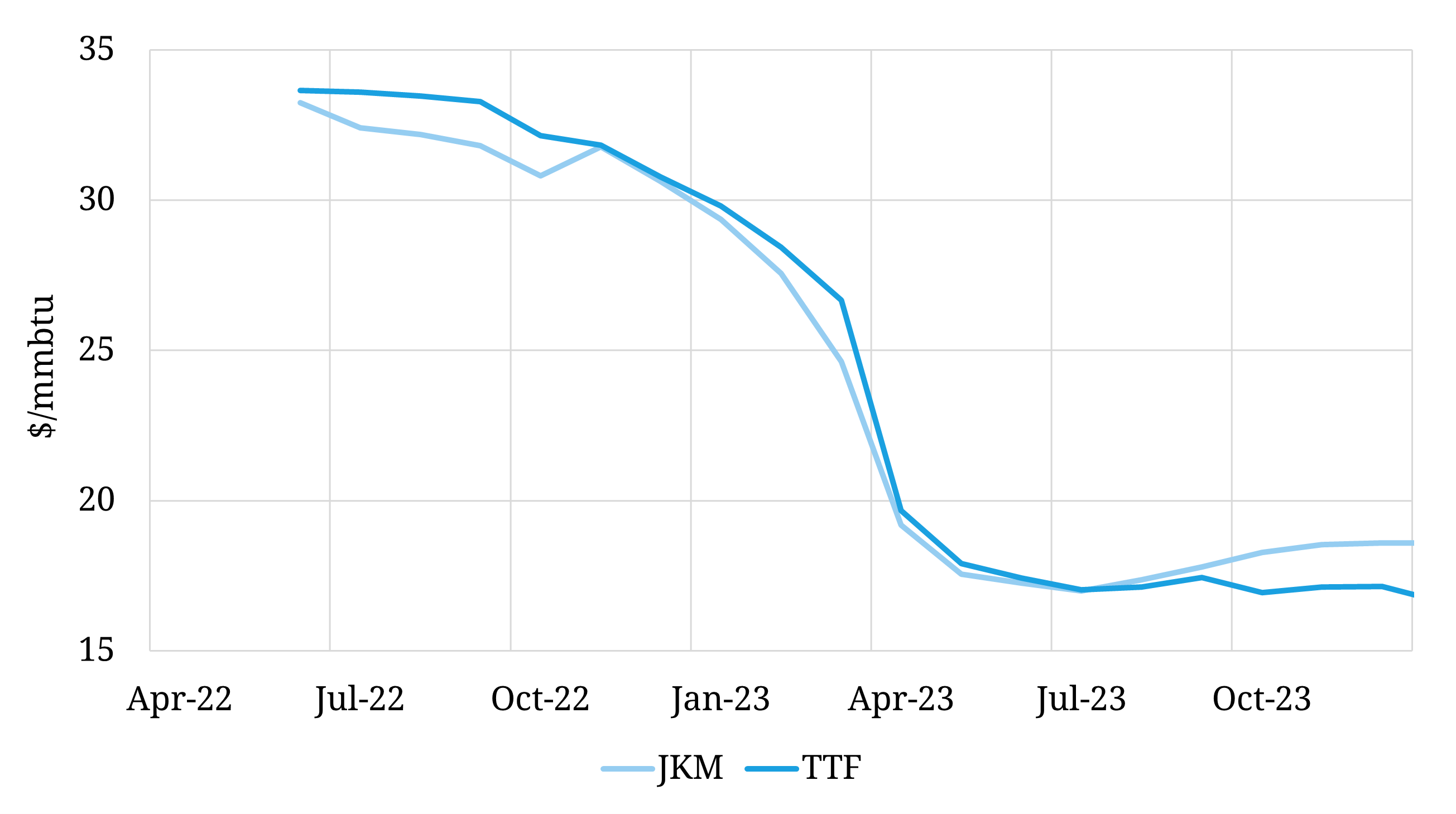 Europe’s requirement for LNG to balance its gas market has seen European TTF prices rise aggressively through Asian JKM levels.