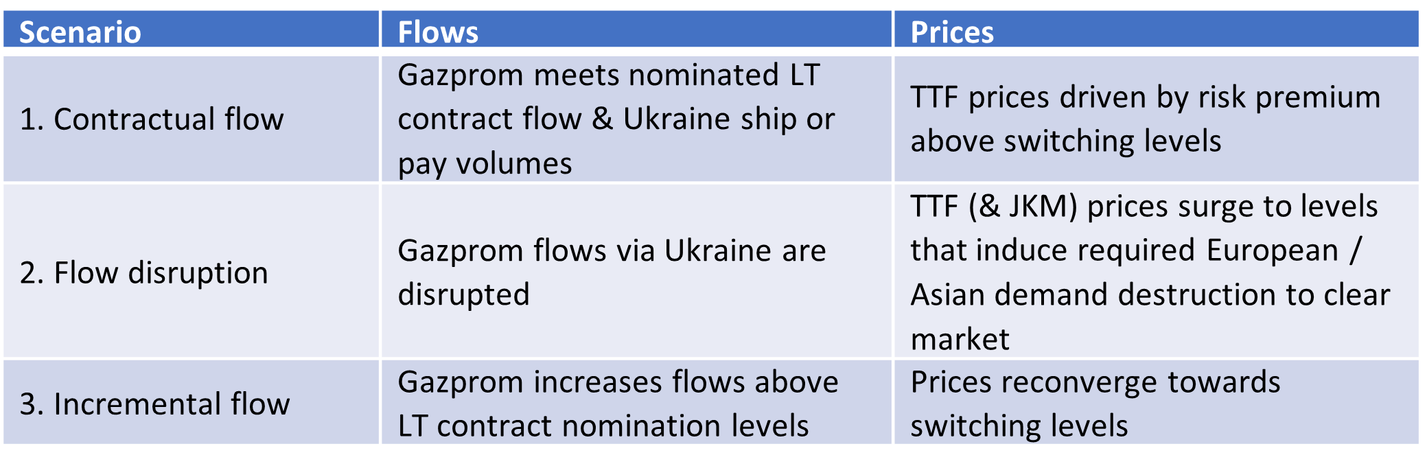 Table 1: 3 broad Russian flow scenarios & resulting price dynamics