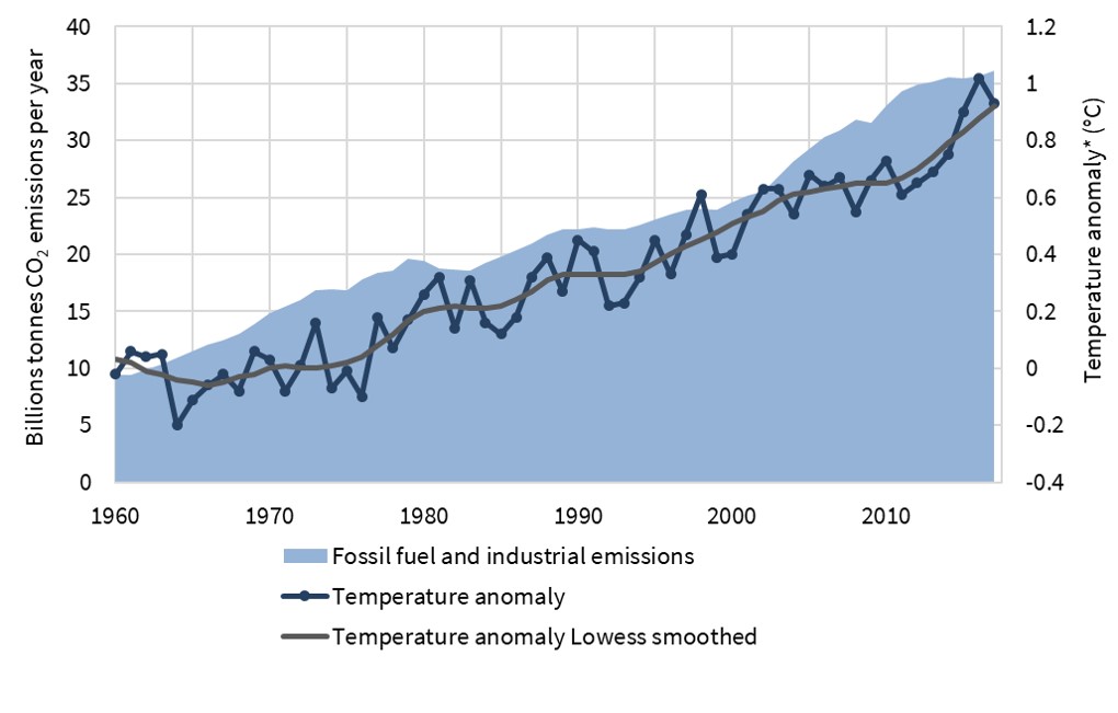 There is clear scientific evidence of the link between rising carbon dioxide levels in the atmosphere and increasing average air & sea temperatures (see Chart 1). There is also growing evidence of feedback loops (e.g. melting sea ice) and accelerating changes in climate patterns, although these are more difficult to measure.