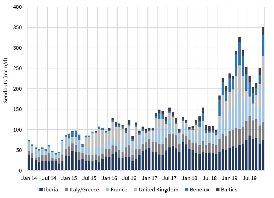 Chart 1: Surge in European LNG sendouts as Asian demand stalls