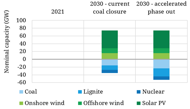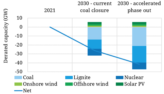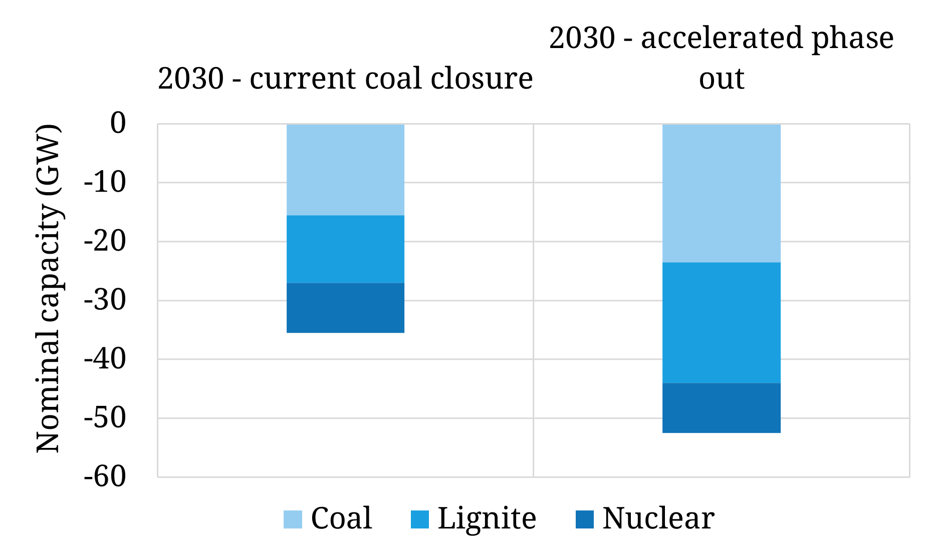 Even assuming the accelerated coal closure timeline (with the entire fleet closed by 2030), Germany still has a positive net gain in nominal capacity. So what is the problem?