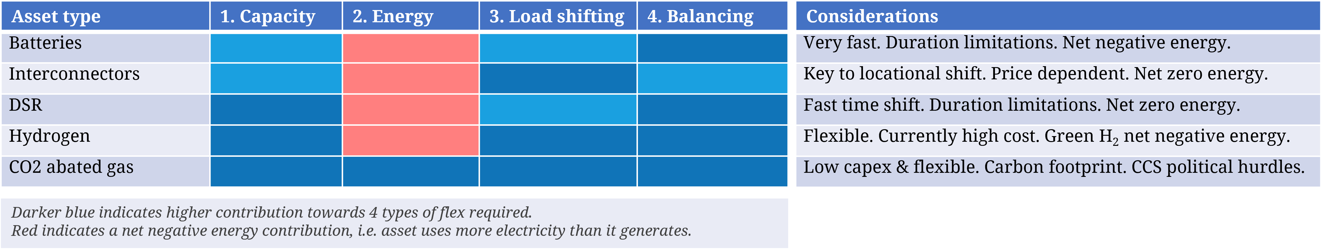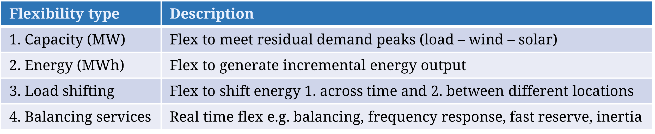 Table 1: 4 key types of flexibility required to support a decarbonising power system