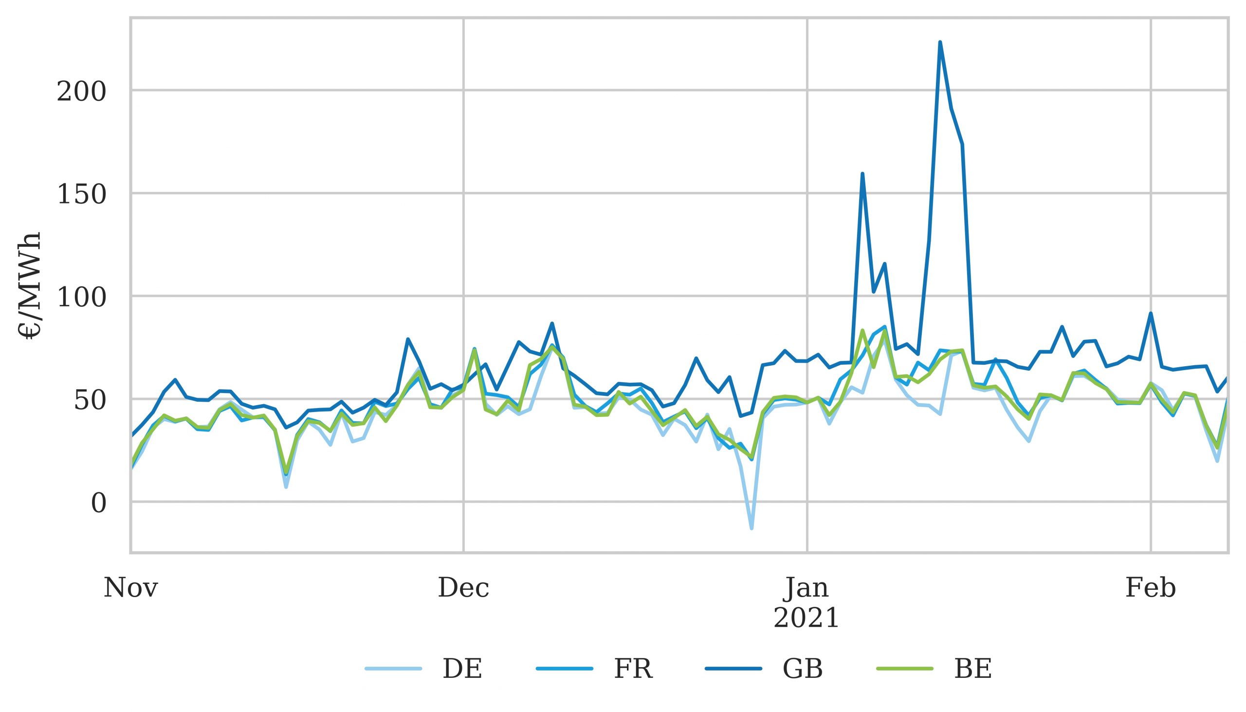 Chart 1: UK power prices vs some key Continental markets