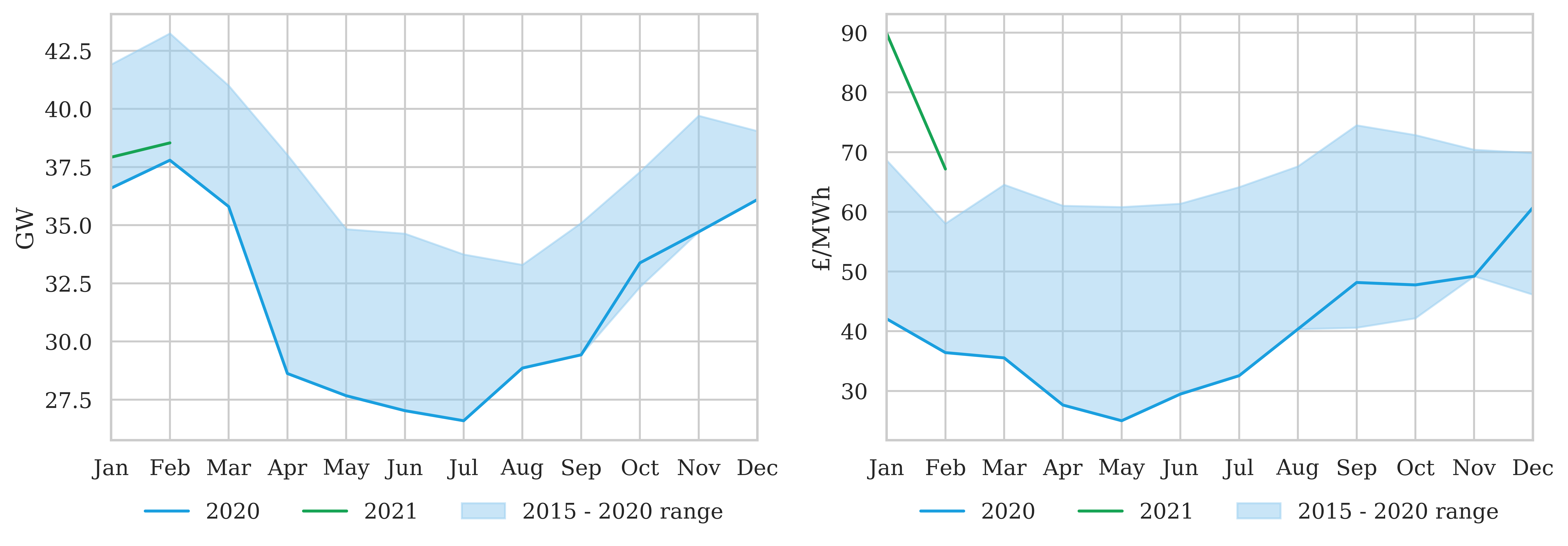 - Total demand in 2020-21 versus the range over the last 5 years