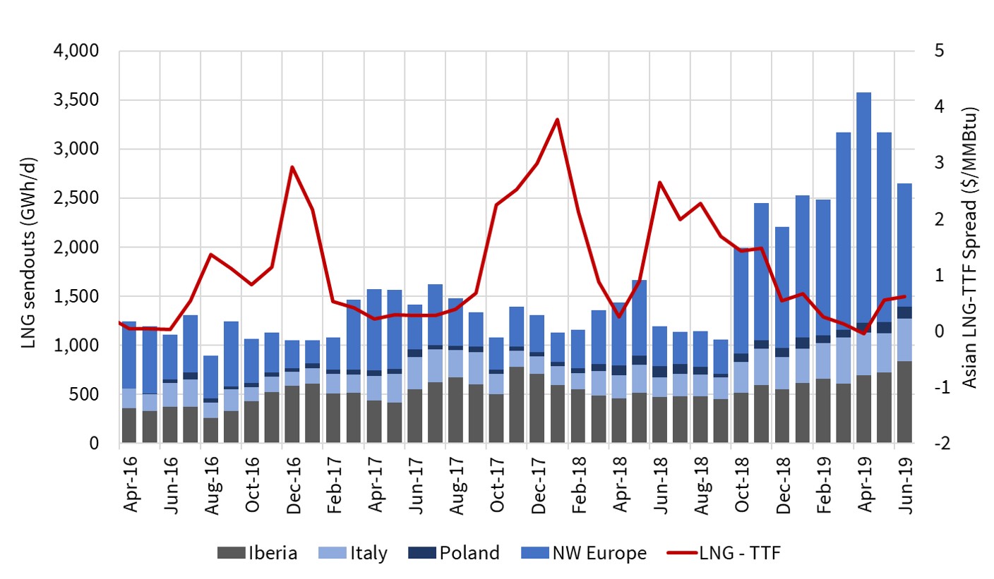 We raised a red flag recently on the potential impact of global economic conditions on gas demand. The trade war appears to be having a particularly strong impact in weakening manufacturing and industrial output. The evolution of LNG demand over the next 1-2 years will be a key factor determining how much surplus LNG will flow into European hubs.